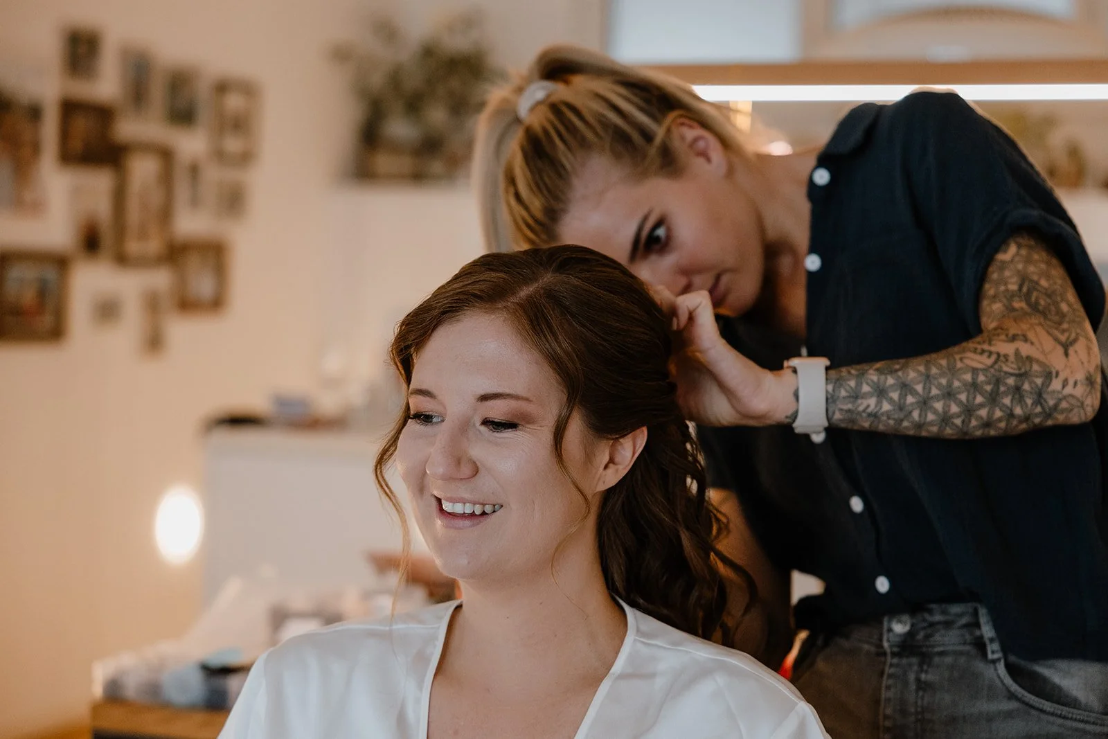 Außerdem helfe ich dir gerne in dein Hochzeitskleid! Am Ende deines Stylings perfektioniere ich nochmals meine Arbeit, befestige den Schleier (wenn geplant) und ziehe dir gerne den Lippenstift nach, für ein paar Getting Ready Fotos!
